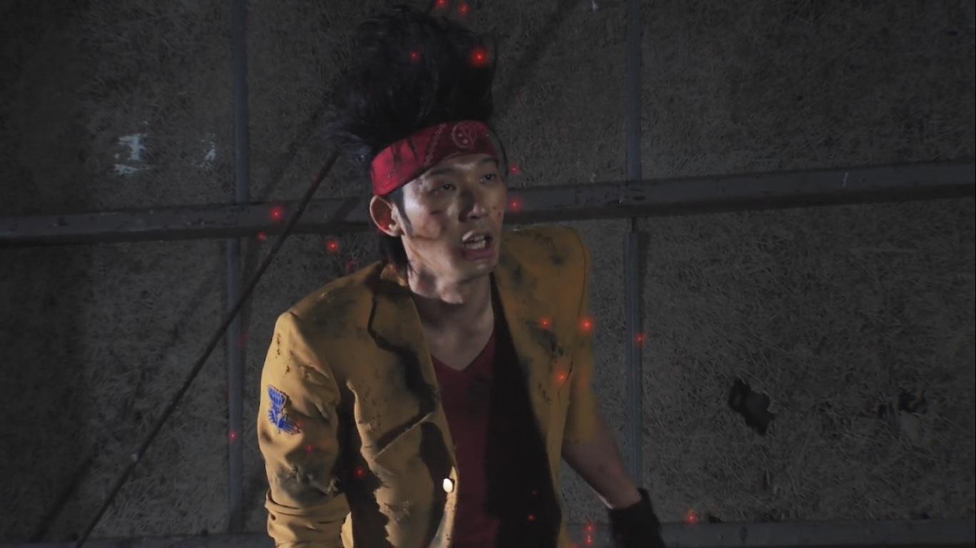 The Riders are called to a Touta Engineering facility, which is one of the locations they had pretended that the box was being moved to. The Washio brothers enter the facility only to find Sento and Banjou waiting there for them. When Kazumi arrives, he tips the balance in the Riders’ favor and the Washio brothers retreat. The Riders then go to the Prime Minister’s office where they confront his aide, who confirms being one of the “Nanba Children” and the source of the information leak. He kills himself with a Bottle before he can be arrested, but reveals that Rogue is heading to the location where the box really is. The three Riders head straight to it’s location. Kazumi tries ringing Akaba but he doesn’t answer. Rogue has already arrived there and Akaba is fighting to delay him.