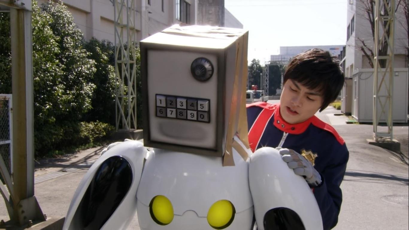 Keiichiro is at the water treatment plant taping a safe onto Jim Carter’s head. The other two Patrangers visit the bistro. Kairi is absent, and when the Patrangers ask after him Touma tells them he is having a break upstairs. The two Patrangers pretend to respond to a report of a Gangler attacking the water plant. They leave and take up surveillance positions. At the plant Jim Carter is confronted by the three Lupinrangers, even though nobody has left the bistro. Jim stalls for time by challenging them to solve a riddle in exchange for the (non-existent) Collection piece in the safe on his head.