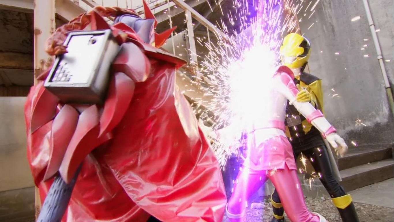 They are interrupted by a Gangler shinobi by the name of Naiyo Capaja. Unbeknownst to the two ladies, Naiyo had placed a barrier around the park so their respective allies cannot reach them. Tsukasa goes to face the Gangler while Umika assembles a makeshift phantom thief outfit before joining them. The rival rangers get in each other’s way, and Naiyo capitalises on it by binding the two together with a chain between their wrists. The pair manage to work together long enough to escape. Back in the haunted hospital, the duo form a plan to trick Naiyo into breaking the chain with her scythe weapon. However, it becomes clear that Tsukasa has been injured in the previous fight.