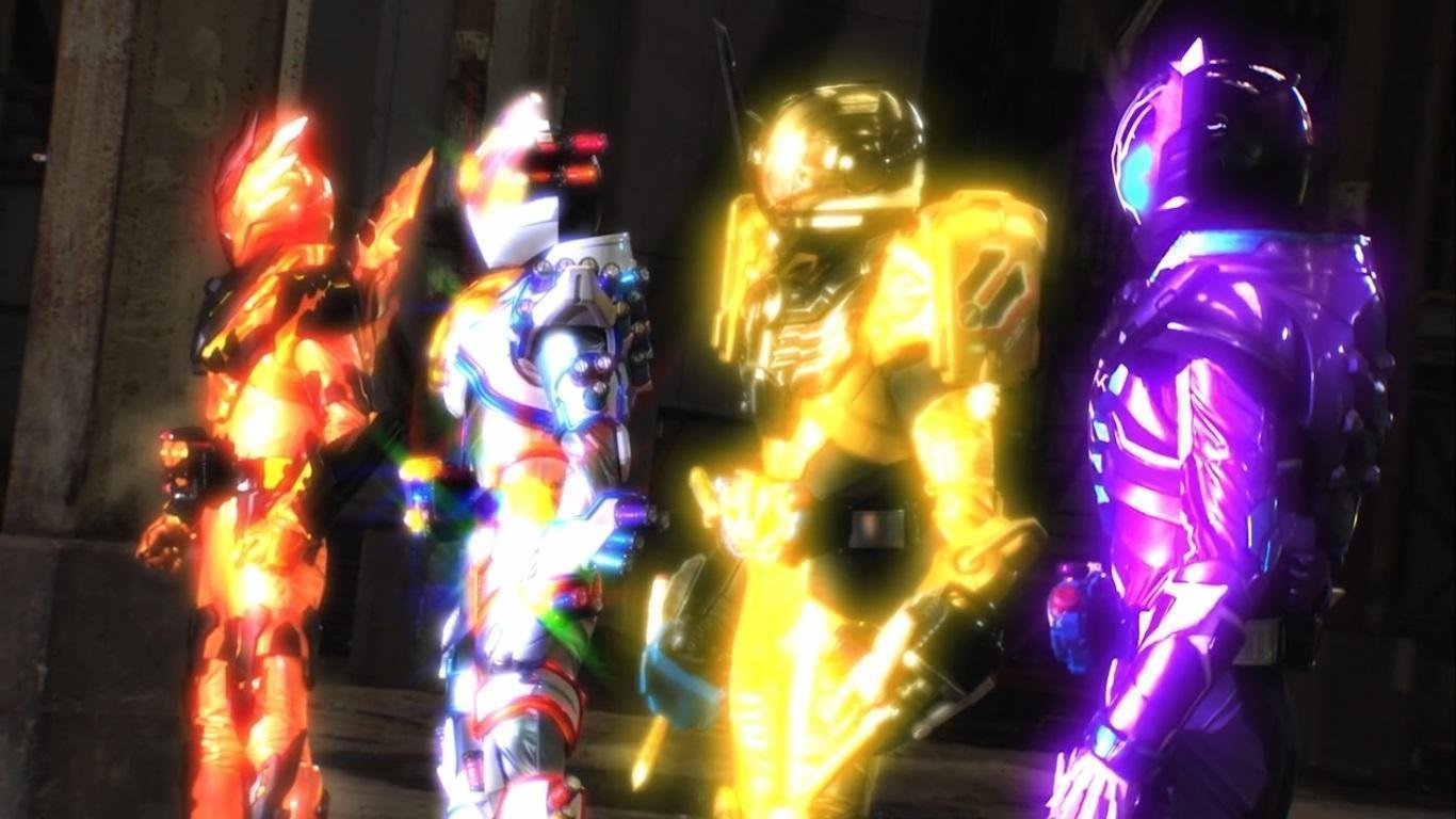 While Kazumi fawns over a Mii-tan body pillow, Sento gets to work on completing Ryuga’s power-up. He’s clearly rushing and Ryuga is injured while testing the new device. While taking a break Sento is contacted by Evolt who demands the Lost Bottle he possesses. That night, while the others sleep, Sento speculates that his father was trying to give him a clue to defeating Evolt, as his Hazard Trigger is similar enough to the Evol Trigger that a similar impact could also restrain Evolt. Sento slips away to confront the alien. As they are about to fight the other Riders appear at his side, having planted a tracker on the new device and followed him. All four Riders transform and attack Evolt.