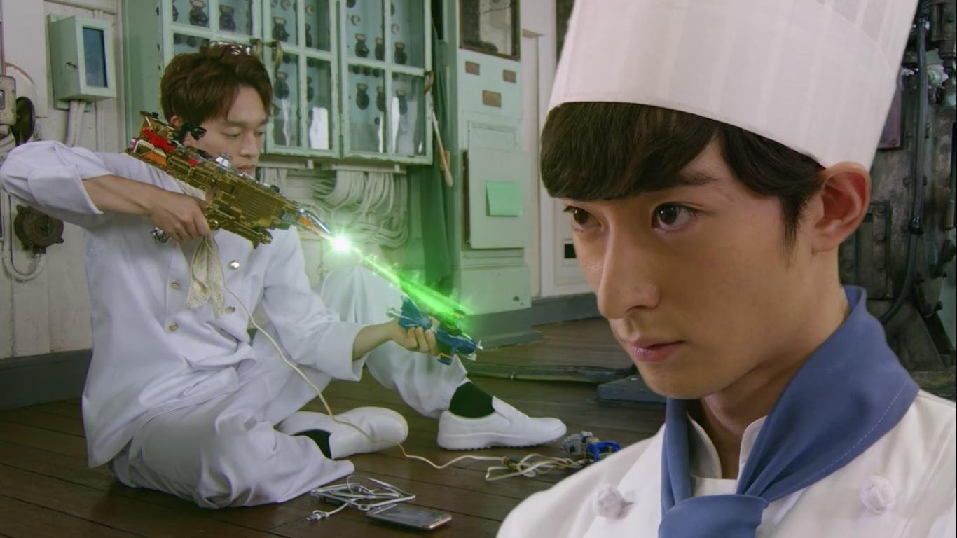 Due to his cooking skills, Noel (X) recruits Touma (Lupin Blue) for a sting operation against a Gangler that is kidnapping cookery teachers. Touma agrees, but it’s clear that he doesn’t trust the turncoat. The two set up classes with Noel posing as Touma’s assistant. The only male student quickly reveals himself as a Gangler, Ushibarock, and kidnaps the pair. He takes them to a docked ship, with the other two Lupinrangers trailing behind them. Noel and Touma quickly find the Gangler and engage with him, only to discover that he is part of a trio known as the Lymon Gang. Touma attempts to crack Lymon’s golden safe only to discover that his VS Vehicle cannot break the lock. Lymon swats him away and damages his VS Vehicle, cancelling Touma’s transformation. Noel quickly gets them out of there before the Ganglers can discover that Lupin Blue is the kidnapped chef.