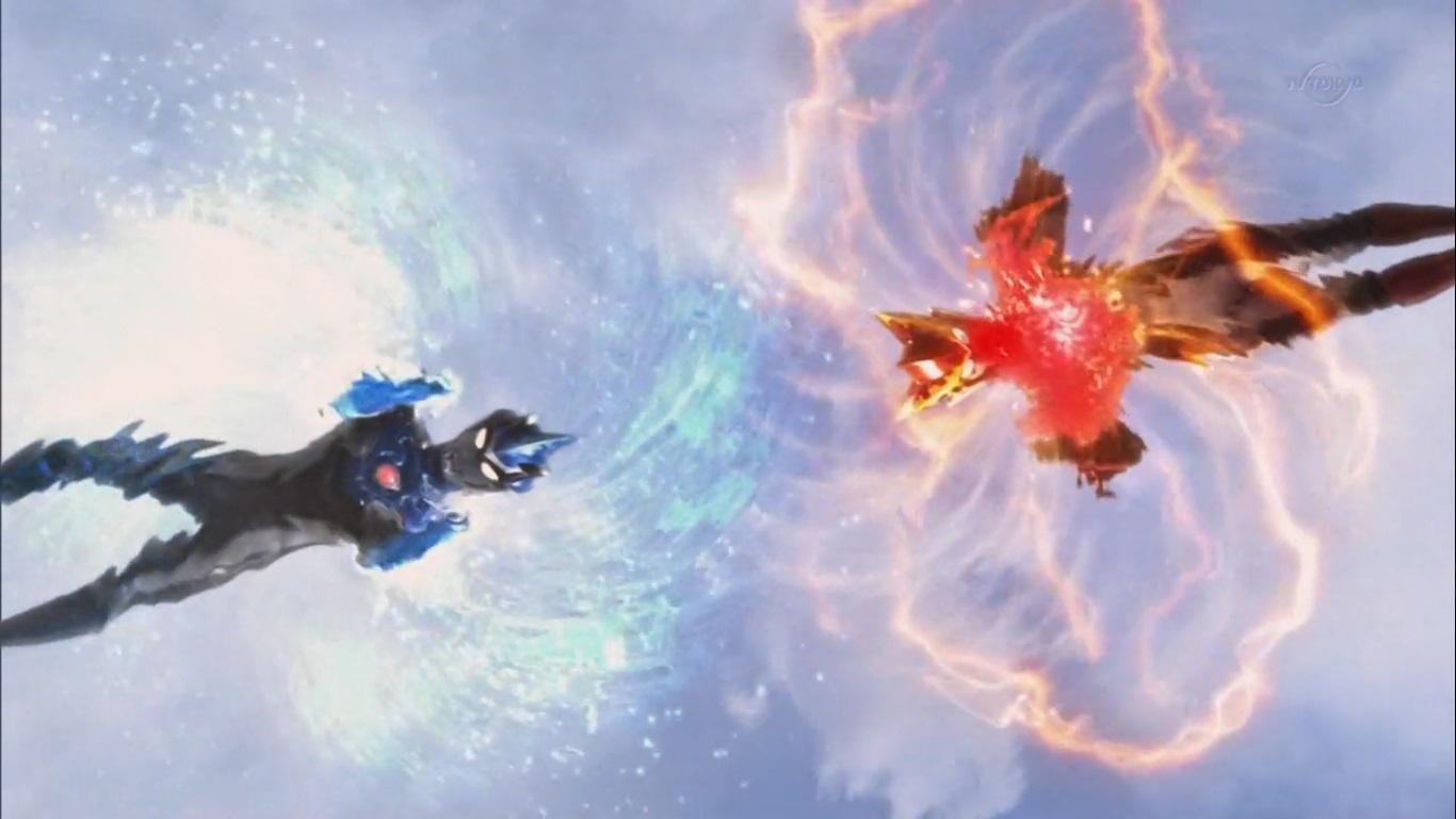 The pair transform and fight off Black King, earning applause from the grateful citizens. When they return to their shop Makoto Aizen is on the TV again, and the brothers are shocked when he uses the term “Ultraman”. Asahi is teasing their father about their mother’s words for him in her diary, and when he attempts to take it from her they end up dropping it. It falls open on a page featuring drawings of the crystals that the brothers use to transform, leaving them with a new mystery to investigate.