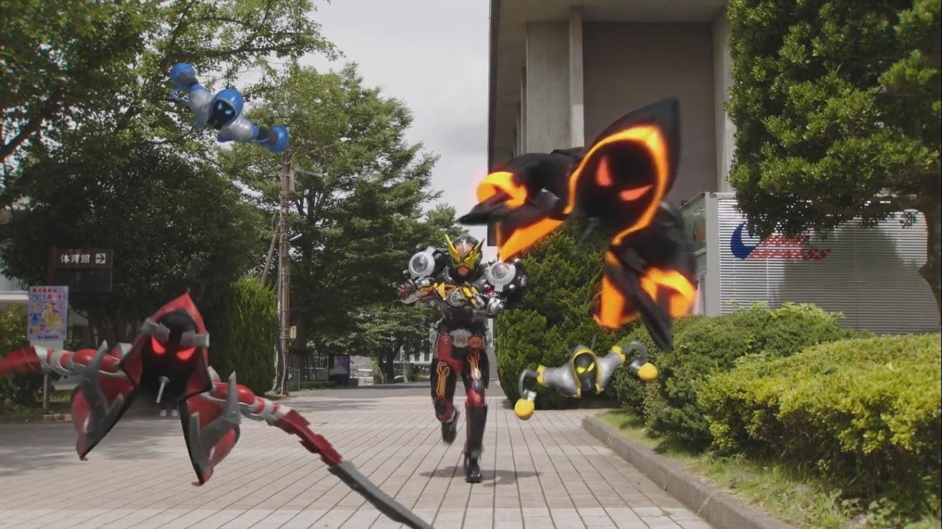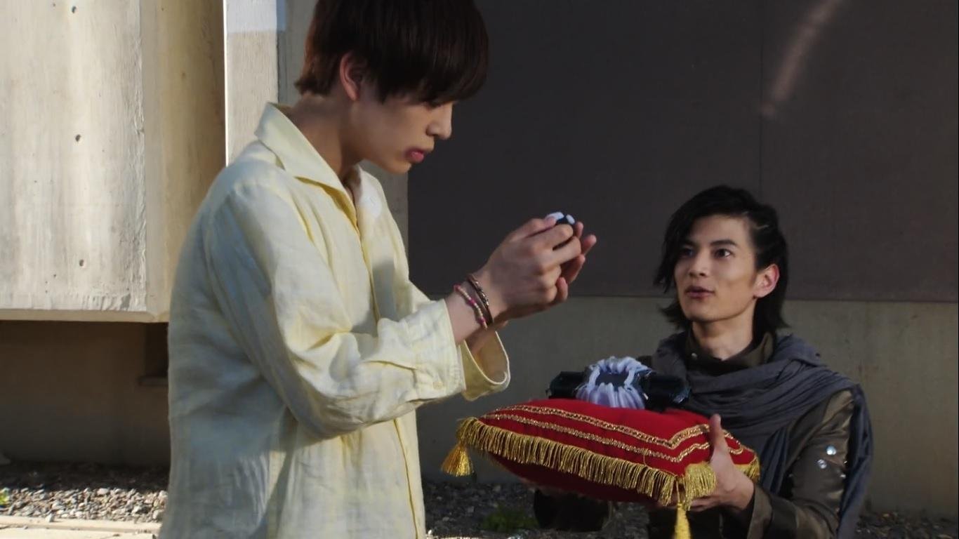 Elsewhere in 2017, a basketball player is saved from being run over by a young man called Uhr. Uhr uses Another ride Watch to change the player into Another Build, who begins attacking people and forcibly changing them into Full Bottle essences. One year later, Sougo wakes and is explaining the strange “dream” he had to his uncle. He goes outside only to discover that Another Build is still rampaging. Seeing that his judoka friend from earlier is in trouble, Sougo attempts to aid him. He is knocked away and discovers the Ride Watch again. Tsukuyomi appears and forces the monster back while attempting to persuade Sougo to throw the watch away. The strange man from earlier, Woz, appears and encourages him to embrace his destiny to save his friend. Sougo decides to use the watch and Woz presents him with a Jiku (Time) Driver.