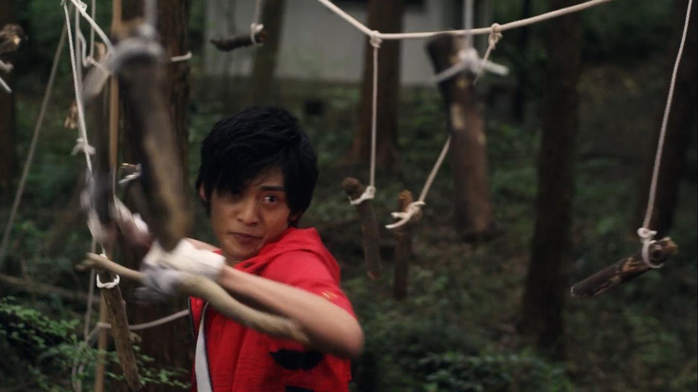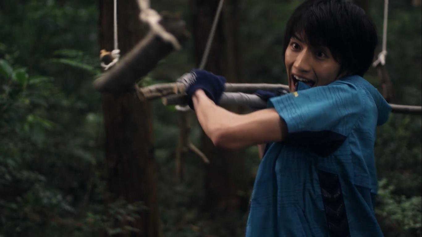 The next day the brothers continue to train while their sister watches over them. Asahi believes she can hear someone calling to her and wanders off. The brothers are sparring with sticks lashed into the shapes of their individual sluggers when they hear their sister scream. They rush after her and discover that she had fallen down an embankment. They fetch a tire on a rope that they had been using in their earlier training and use it to haul Asahi back up again. They then notice a strange light glowing from a nearby cave. Isami (Blu) carries their sister back to their training area while Katsumi (Rosso) investigates. Within the cave the brothers discover the Ultraman Victory crystal, which presents itself to Katsumi.
