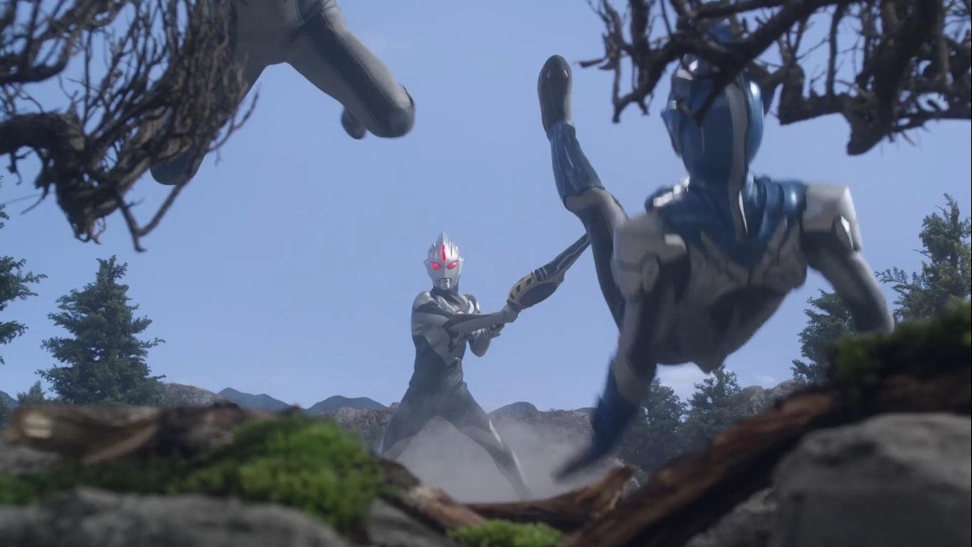 Aizen transforms and fights the brothers again. He admits to creating incidents to make him look like a hero, still believing that he makes a better Ultraman than the brothers. The brothers insist that they don’t wish to be seen as heroes, they just want to protect those in need, and begin fighting back. When Aizen launches a ‘Dark Storium Dynamite’ attack, Katsumi uses the Victory crystal to change into his Ground form, which has heightened defenses and can repel his attack. Isami counterattacks with a ‘Bringer Flash’ attack which manages to down Aizen. Back on the ground, the brothers confiscate the Orb Ring Neo from Aizen before leaving him to wallow in his defeat.