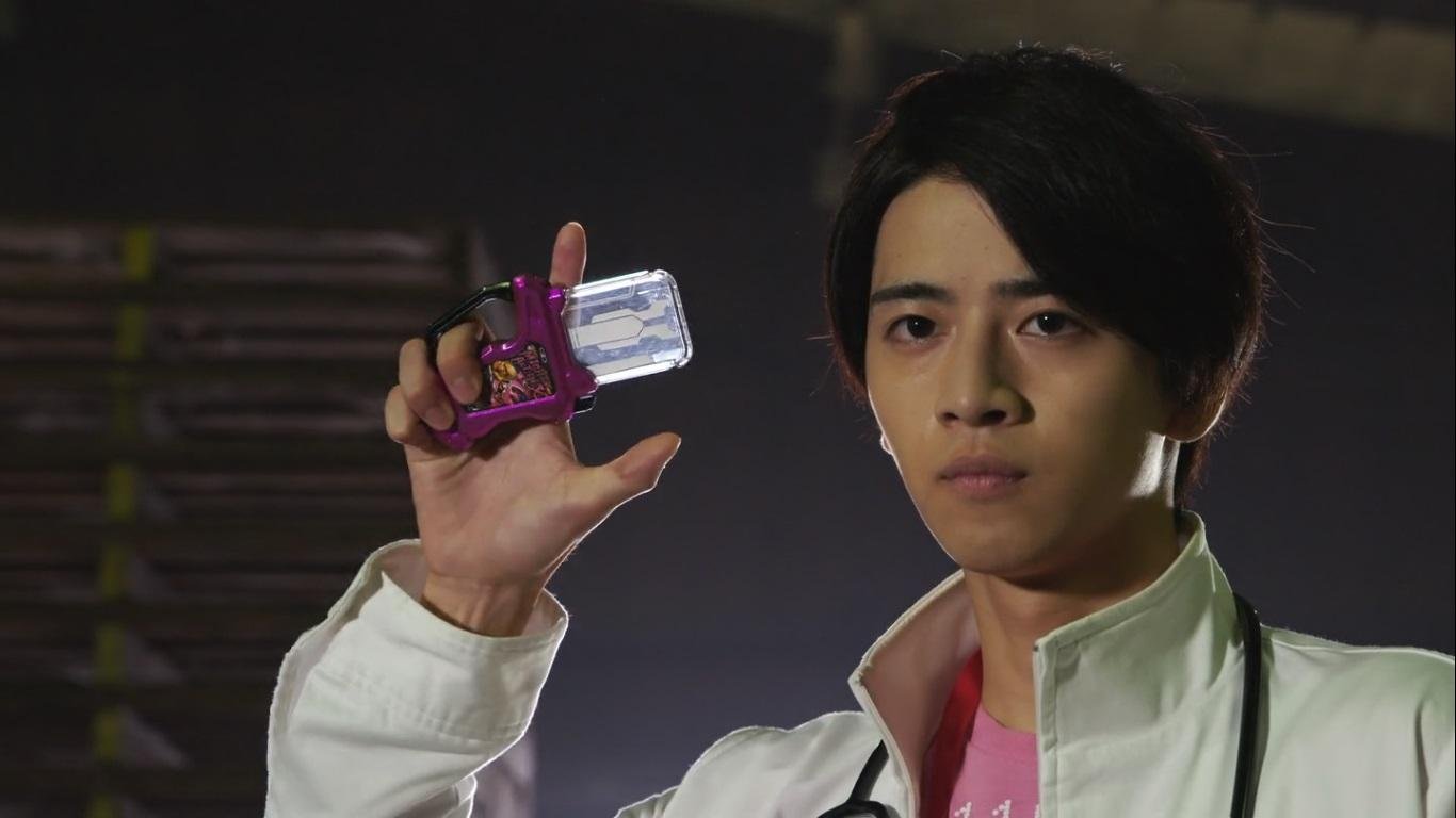 Sougo is determined to find Another Ex-Aid but Geiz tries to stop him getting involved, pointing out that Build no longer exists due to Sougo retaining his power. Sougo refuses to allow someone he cares about to suffer, and when he asks Geiz if he has experienced that the Rider grabs him by the collar, recalling the immense losses caused by Oma Zi-O. In the process he knocks Tokiwa’s portable console out of Sougo’s pocket, bringing it to Sougo’s attention.
