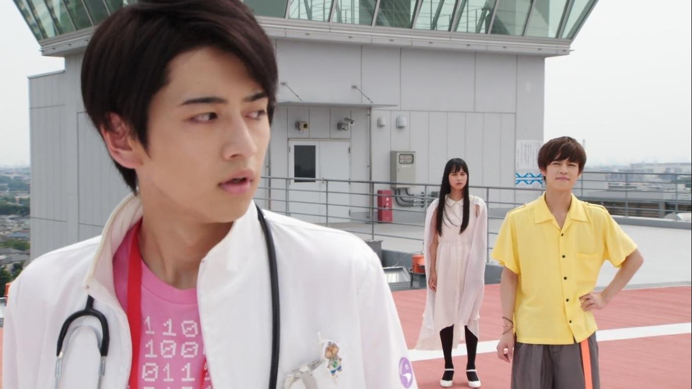 Emu goes to the hospital’s helipad, where he is transported to the game world. He pleads with Iida to stop attacking people and focus on his son. Iida refuses, believing that to cease his actions would be to give up on his son. Sougo and Tsukuyomi arrive, explaining that they had noticed that Another Ex-Aid’s victims were all around the same size. Keisuke’s heart condition has progressed even beyond the ability of a certain genius surgeon to help him, so his father is attacking people to try and find a compatible donor. Inspired by Tsukuyomi, Sougo had realised that Emu was trying to save Another Ex-Aid instead of defeating him.