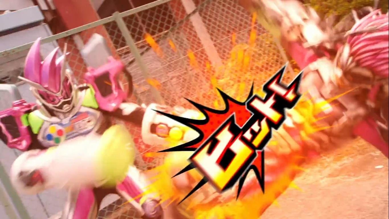 Ex-Aid’s inexplicable attack on Sougo (Zi-O) and Geiz is interrupted by Time Jacker Hora, who freezes them all in place while she goes over to the prone man who had been Another Ex-Aid. She removes the Ride Watch from within him and restarts it before replacing it. This transforms him back into Another Ex-Aid, instantly cancelling Emu’s (Ex-Aid) transformation before the game world disappears around them.