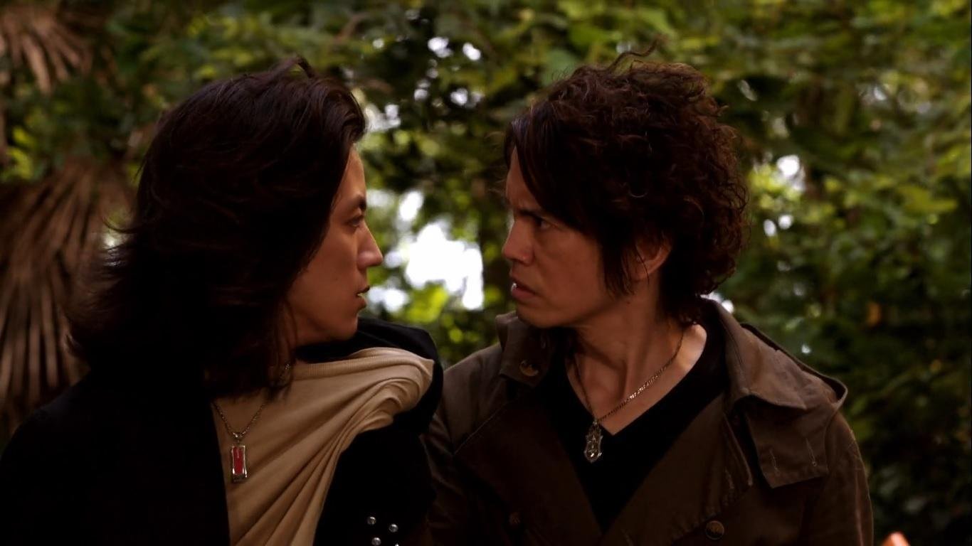 The Rider find themselves battling Sakuma at two different point in time; Geiz in 2003 with the Faiz armour and Sougo in 2018 with the Fourze armour. After being defeated twice, Sakuma returns to normal and says a final goodbye to Karin before she finally fades away. Masato and Takumi make their leave, as Sougo can’t help but compare their fractious relationship to that of his own with Geiz.